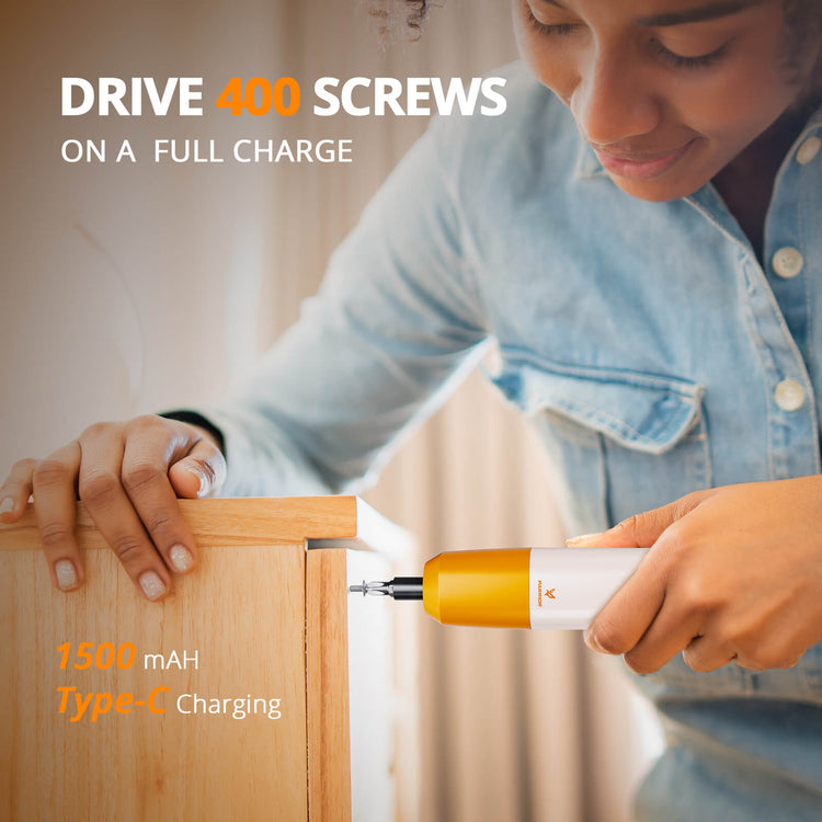 Equipped with a high-speed magnetic motor and a metal gearbox, this rechargeable screwdriver delivers strong and stable power output of up to 5N.m torque. The 1500mAh large capacity battery provides an extended runtime, allowing the screwdriver to drive up to 400 M3.5*25mm screws on a full charge.
